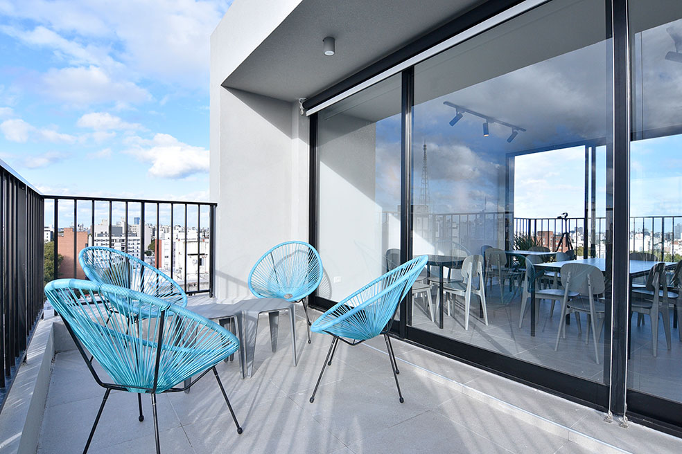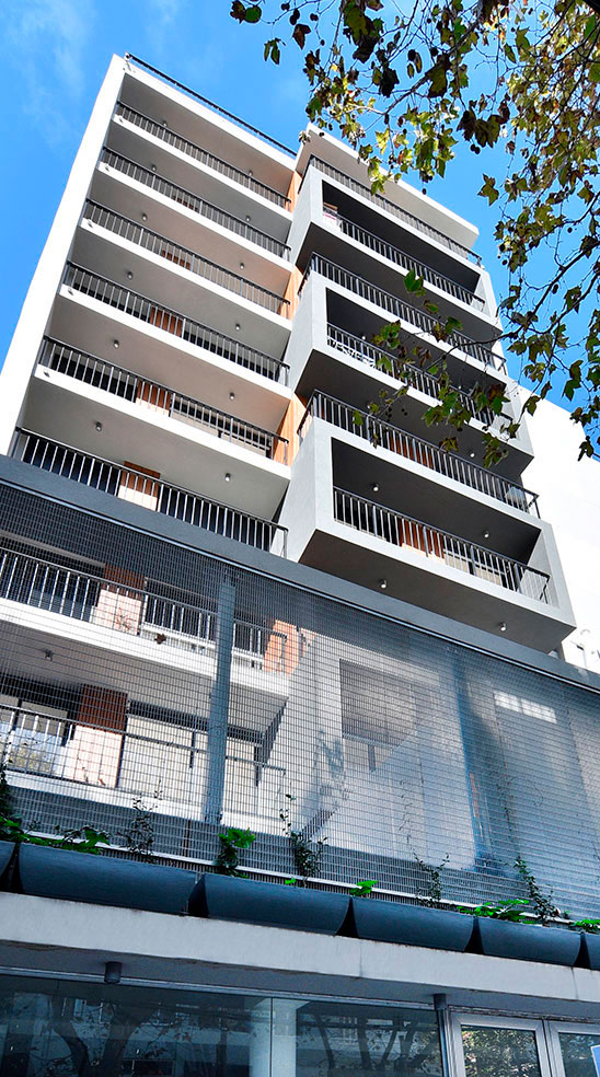 apartamentos de 1 dormitorio, 27 apartamentos de 2 dormitorios. En el penthouse, 2 apartamentos de 2 dormitorios y 1 de 3 dormitorios, todos con parrillero de uso exclusivo.